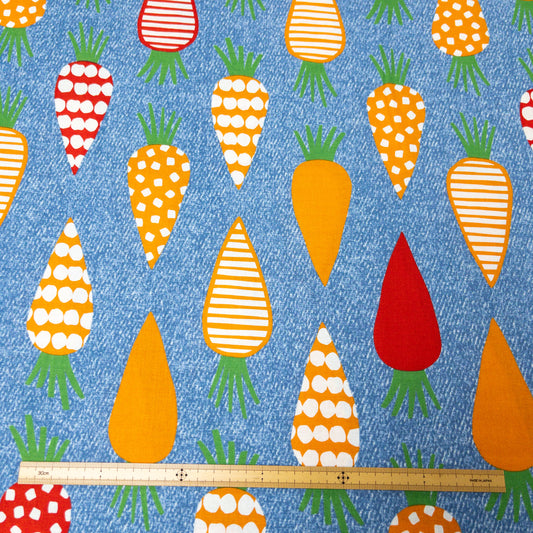Japan | art of carrot 藍色藝術蘿蔔 | cotton printed shirting 純棉