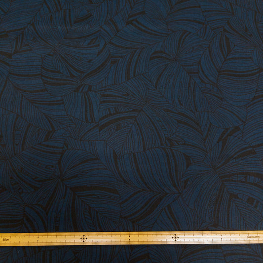 Japan | deep blue leaves 深藍植物暗花 | cotton printed broad 純棉