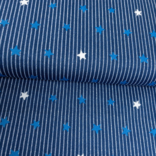 Japan | striped denim color stars 牛仔色間條小星星 | cotton printed oxford 純棉