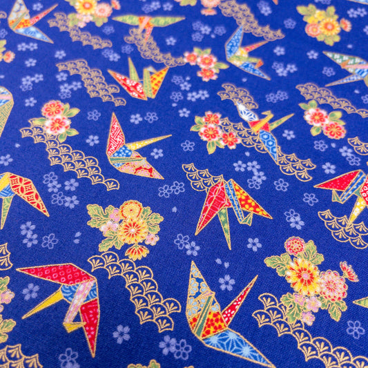 Japan | paper crane 燙金紙鶴和扇 | cotton printed sheeting 純棉
