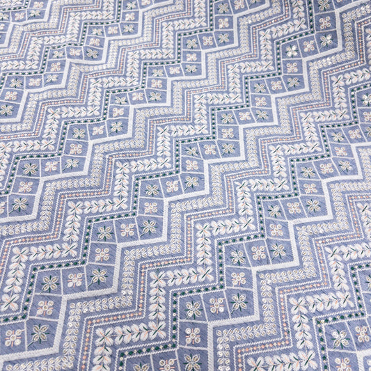 India | plaid embroidered fabric 方格紋刺繡布 | cotton 純棉