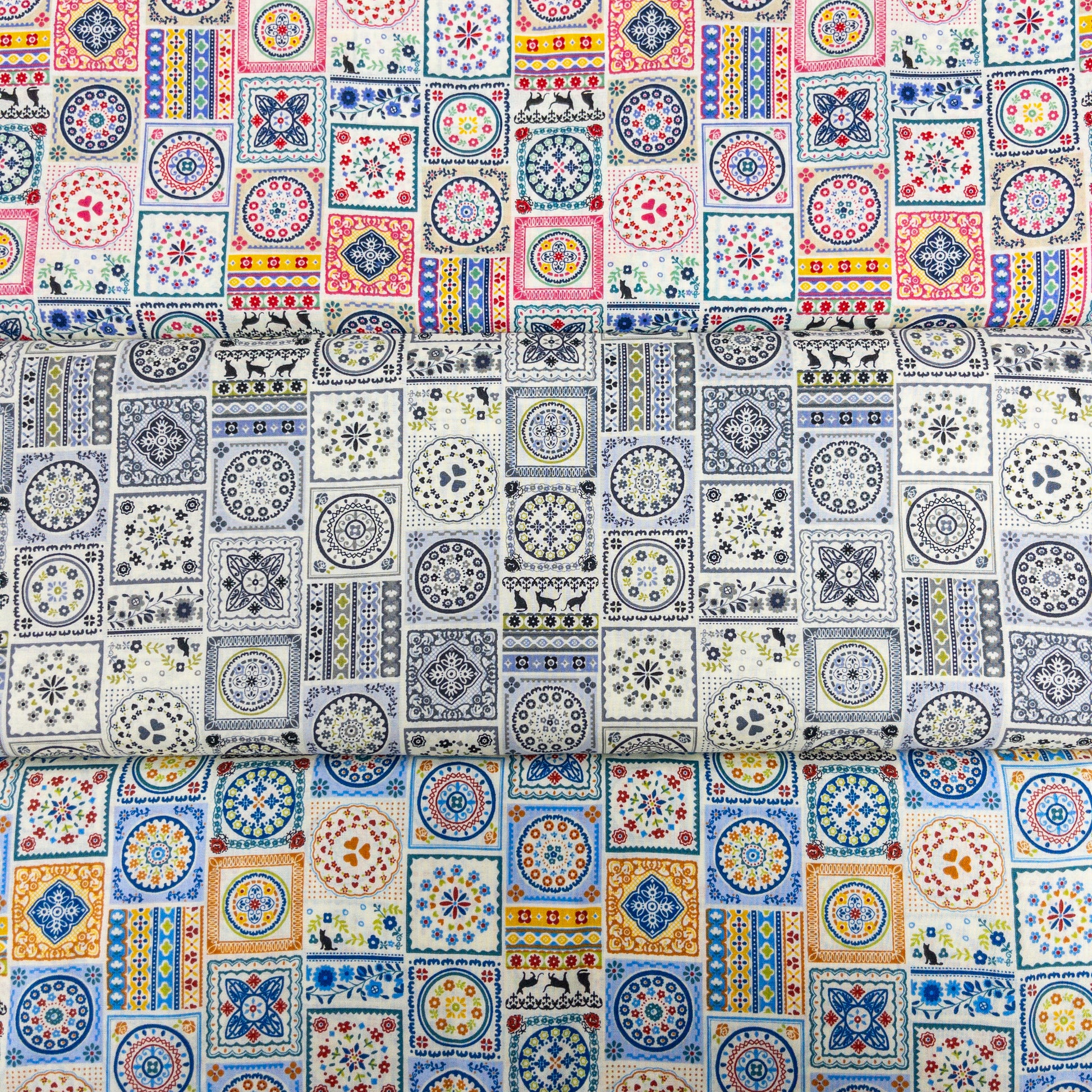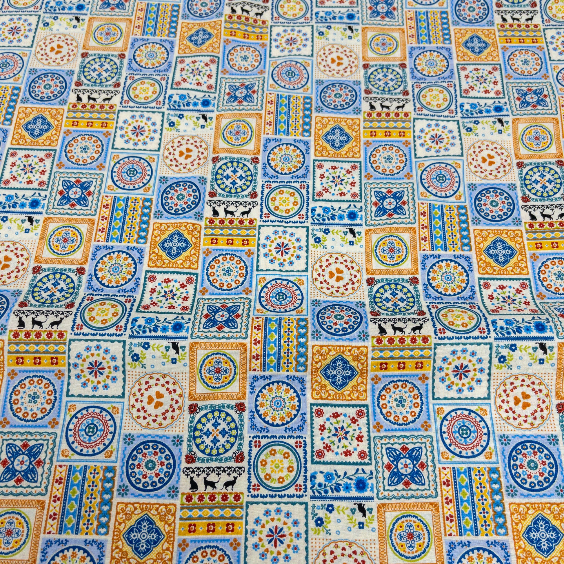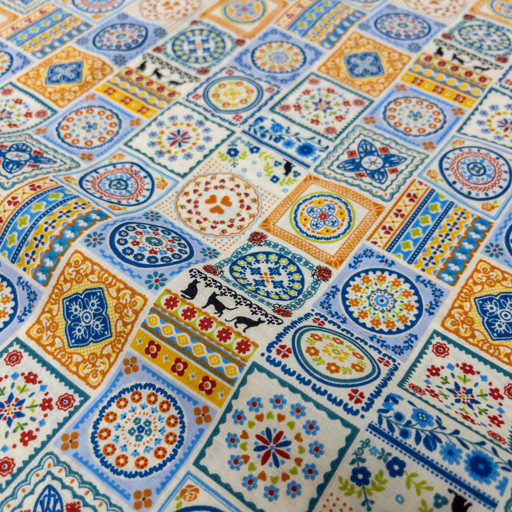 Japan | european cat square tile 東歐貓貓方磚圖案 | cotton printed sheeting 純棉