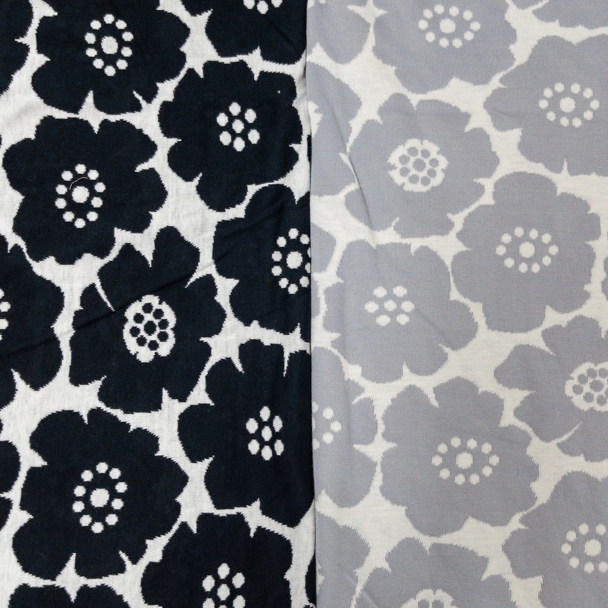 maffon | medium anemone flowers black ivory 北歐簡約中花 黑+米白 | cotton jacquard knit 雙面純棉提花針織 - 160cm