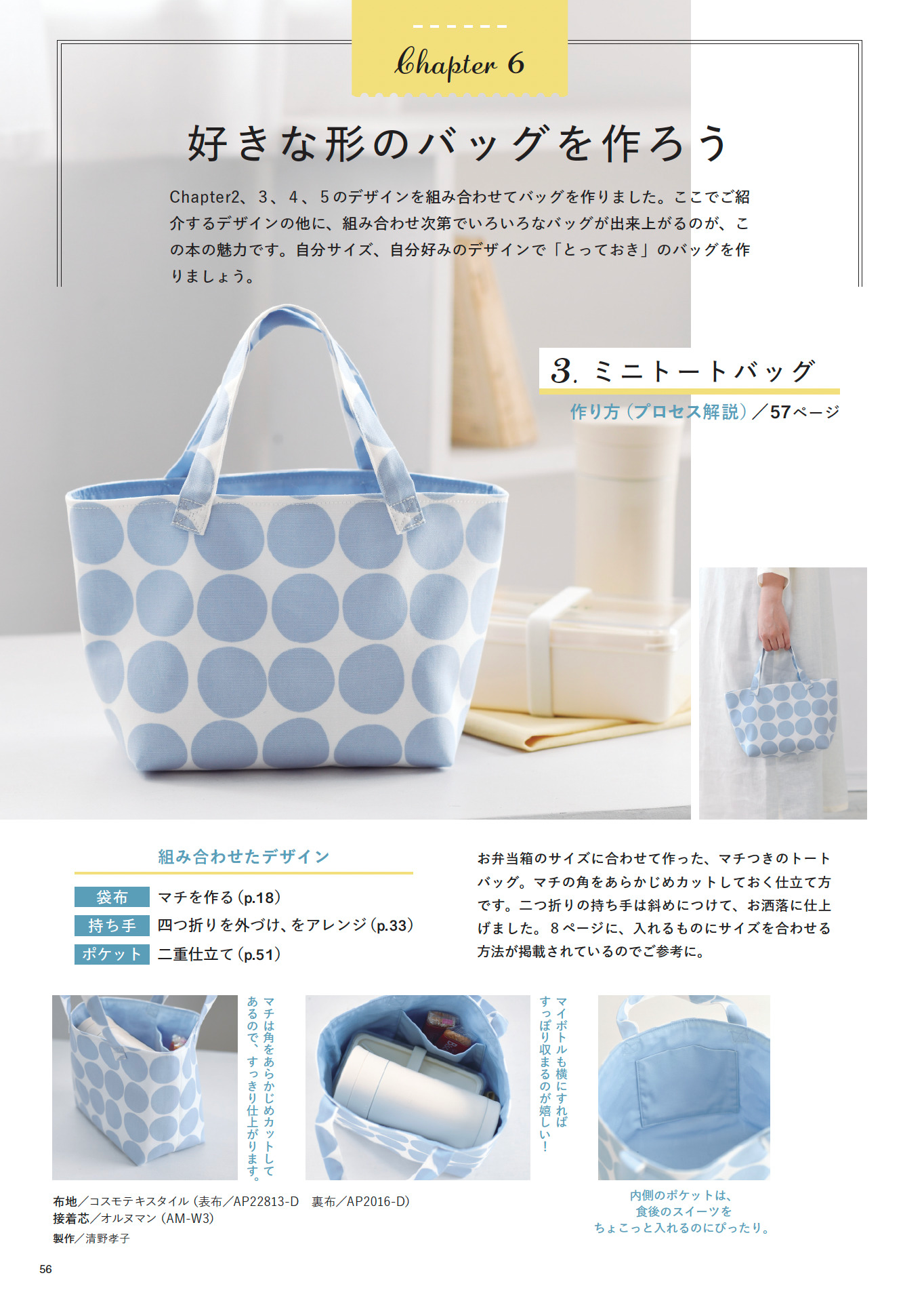 本書讓您可以自由設計,製作任何形狀的包包。本書將在第一章中學習包包的基礎知識,然後在第二章中自由組合包包面料,在第三章中設計提手,在第四章中設計開口,在第五章中設計口袋,製作出您專屬的原創包包。此外,本書還包含實用訊息,例如如何根據想要放入的物品尺寸進行搭配,以及如何打造與您心儀的市售包包相同的設計。為了幫助您掌握基礎知識,本書也透過照片詳細講解了簡易托特包的製作過程。透過本書,您可以拓展製作包包的樂趣,並學會製作各種各樣的包包。