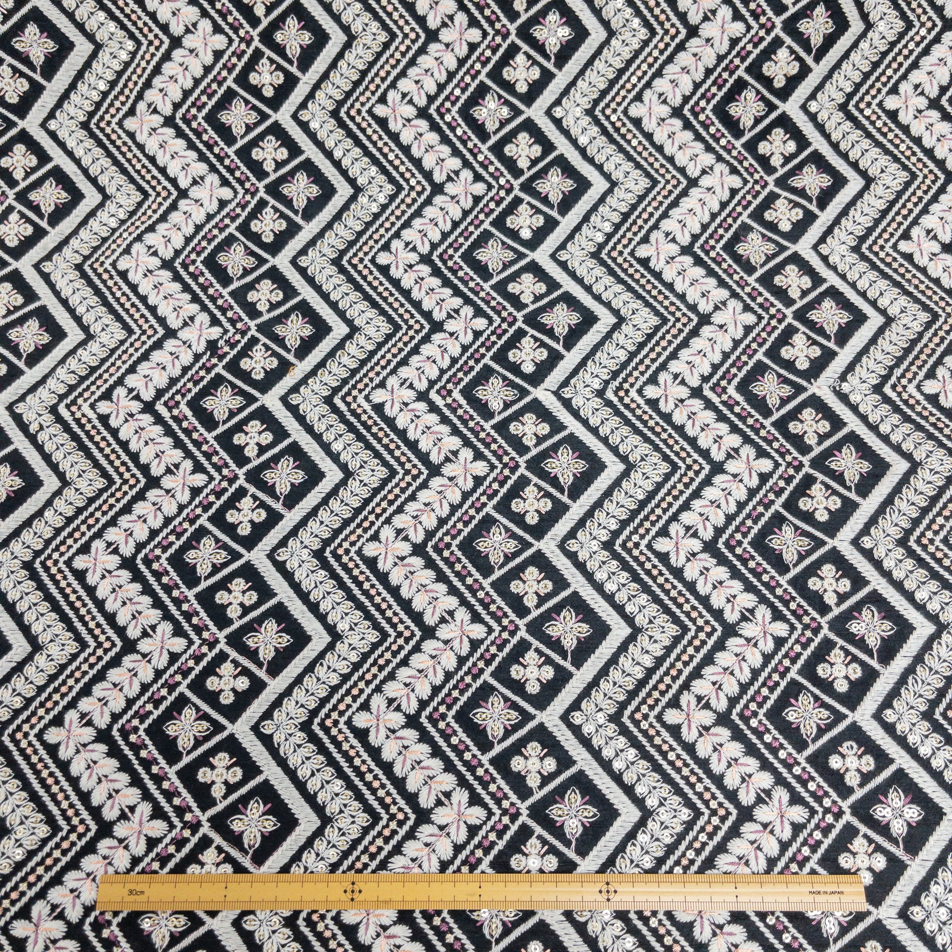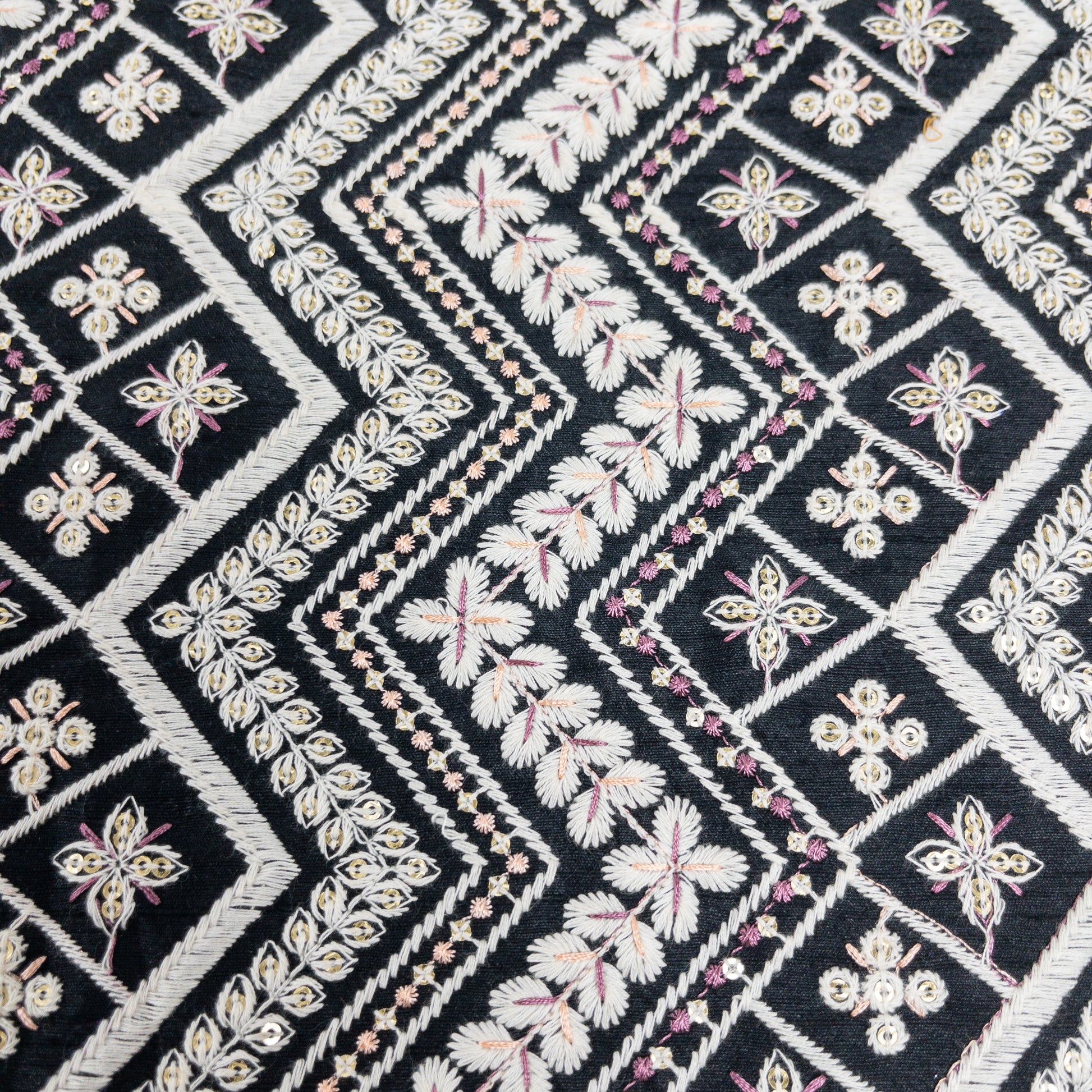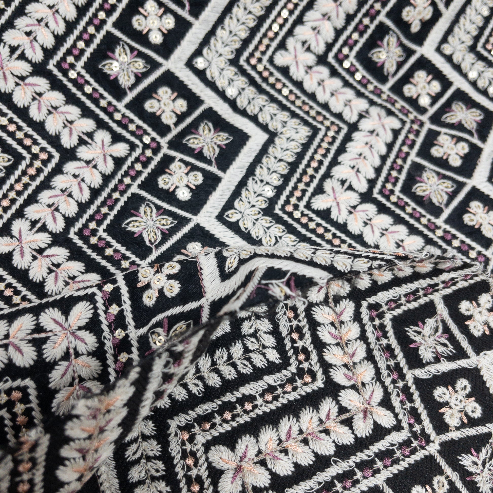 India | black ethnic embroidered fabric 黑色民族風刺繡布