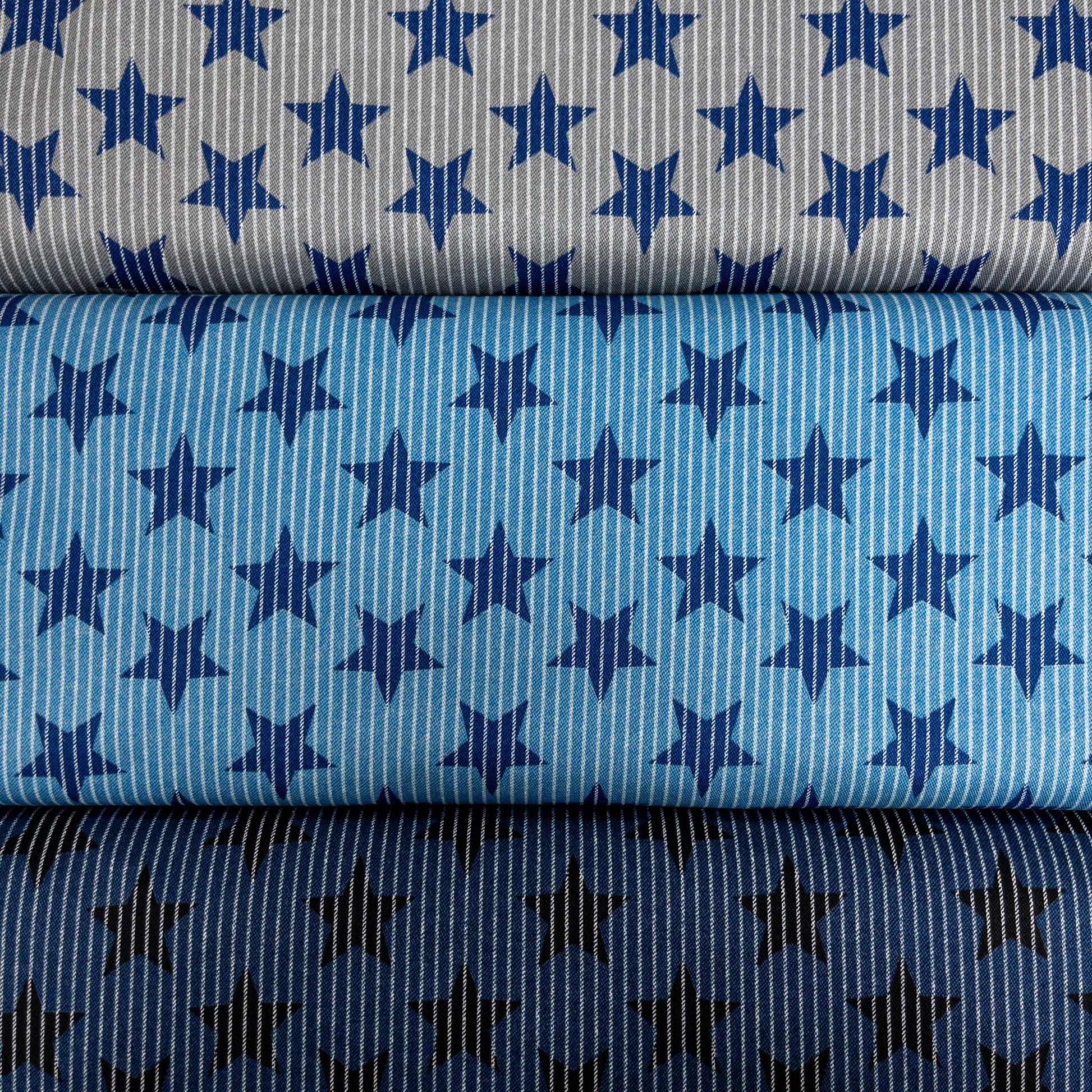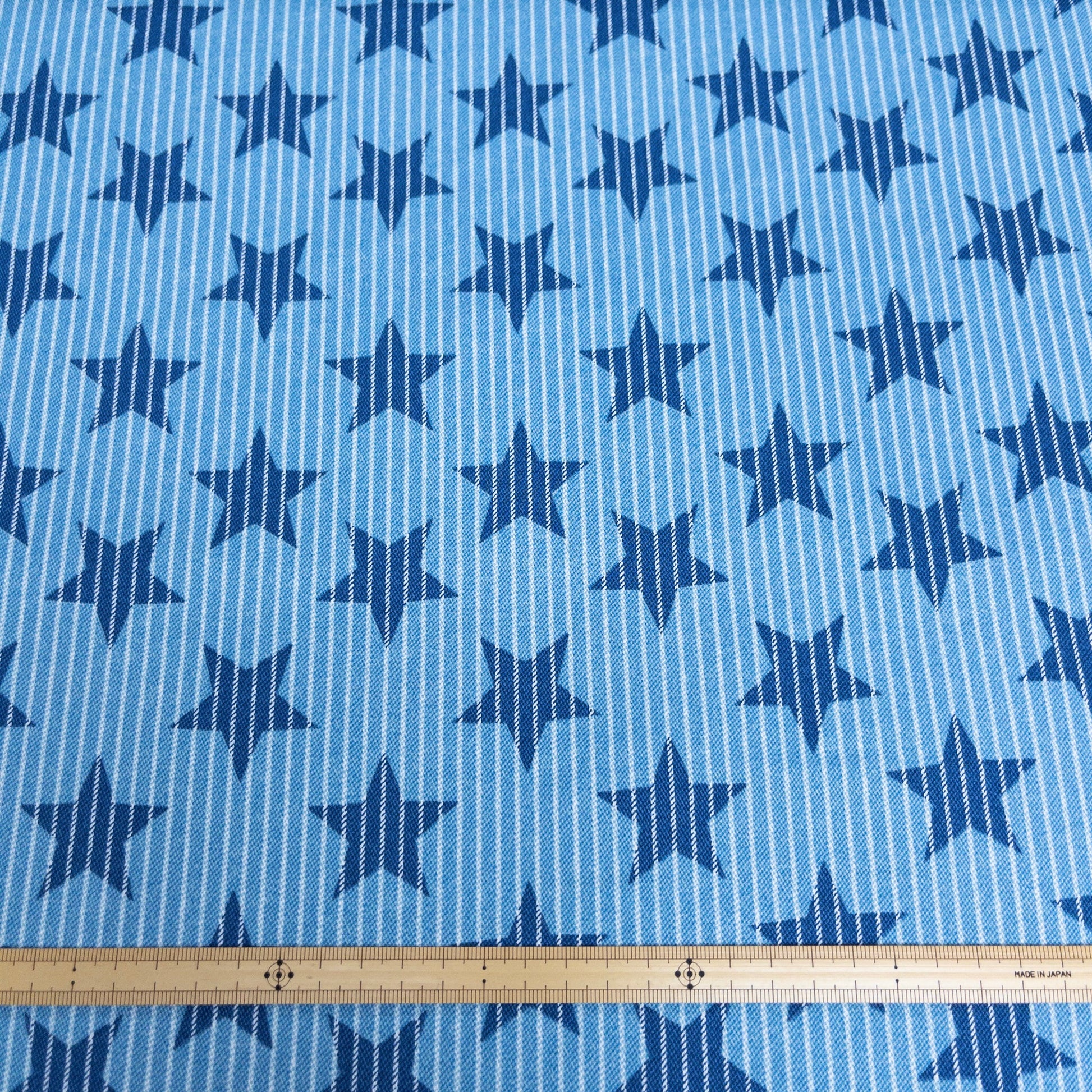 Japan | striped denim color stars 牛仔色間條星星 | cotton printed twill 純棉