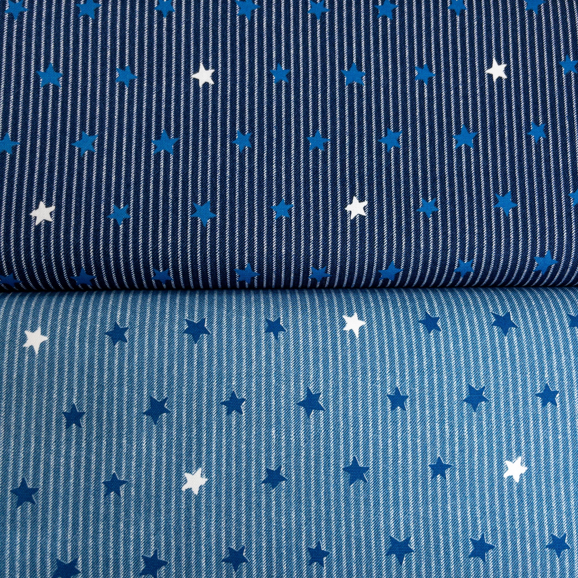 Japan | striped denim color stars 牛仔色間條小星星 | cotton printed oxford 純棉