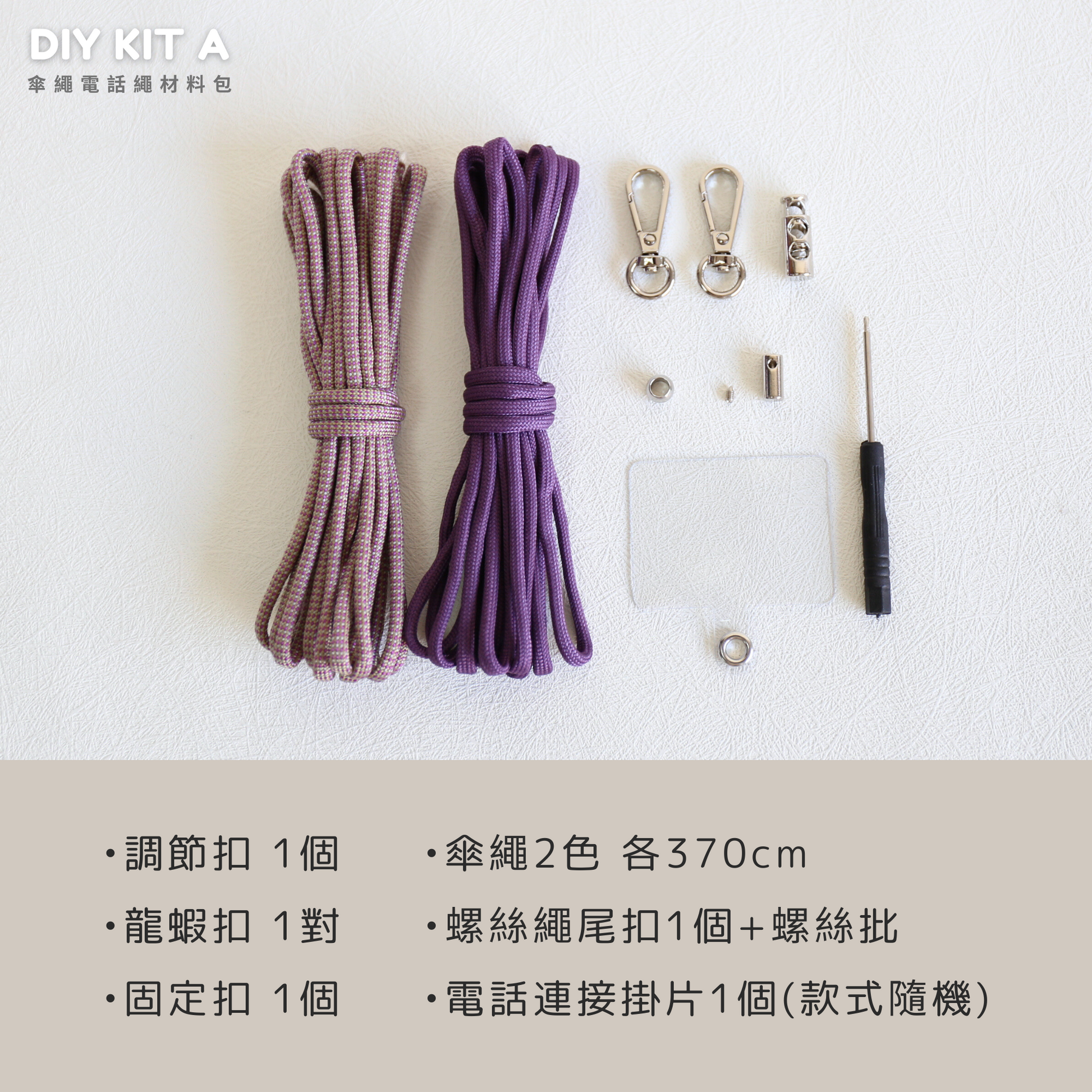 可調節長度傘繩編織 電話繩材料包 A