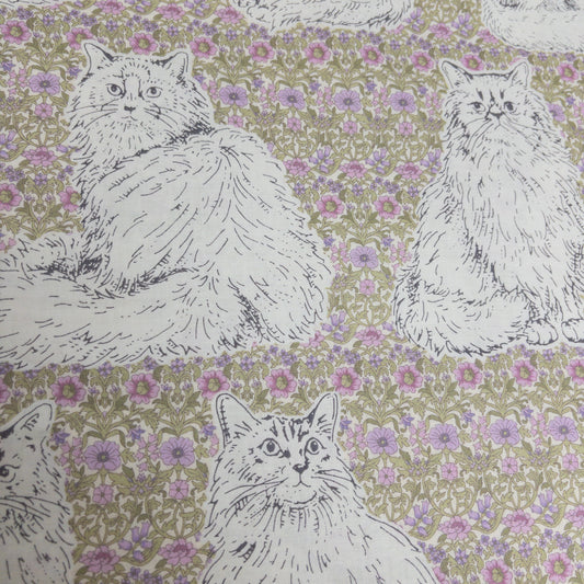 Japan | flowers with cats 歐洲風格紫花貓 | cotton printed shirting 純棉