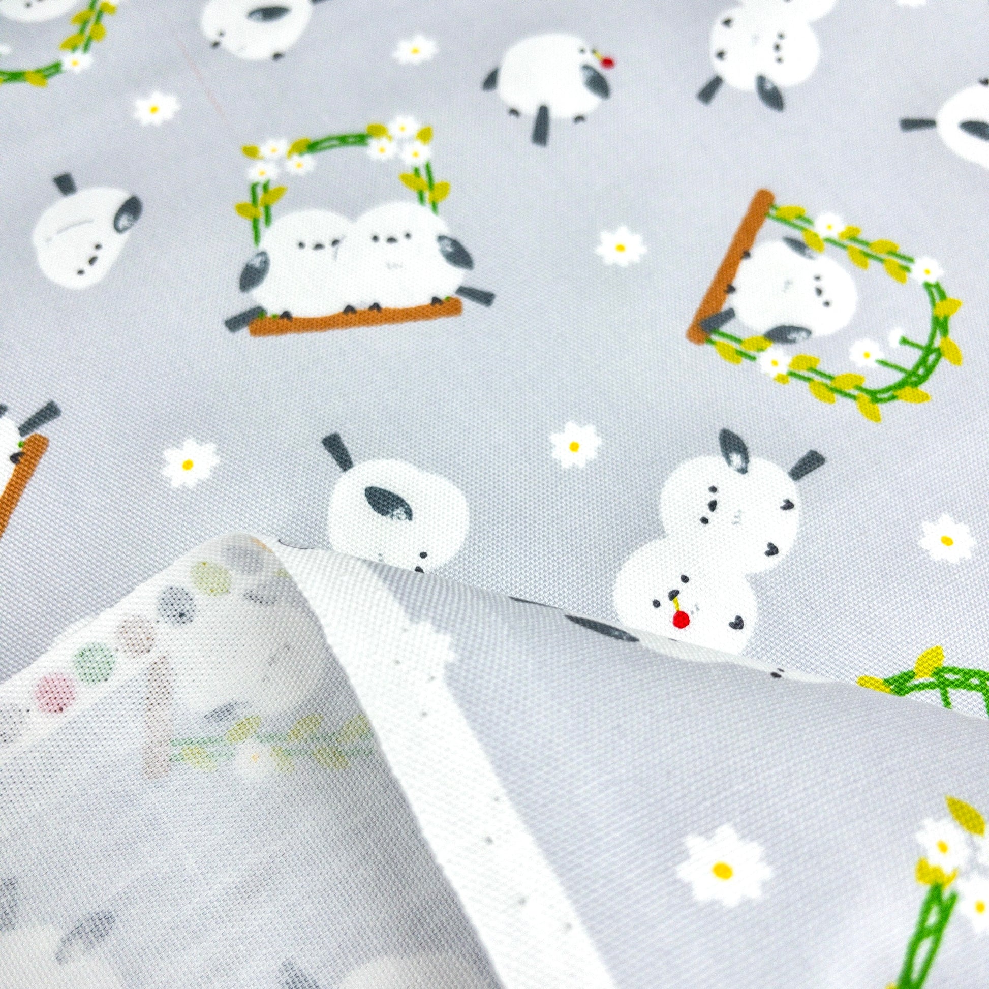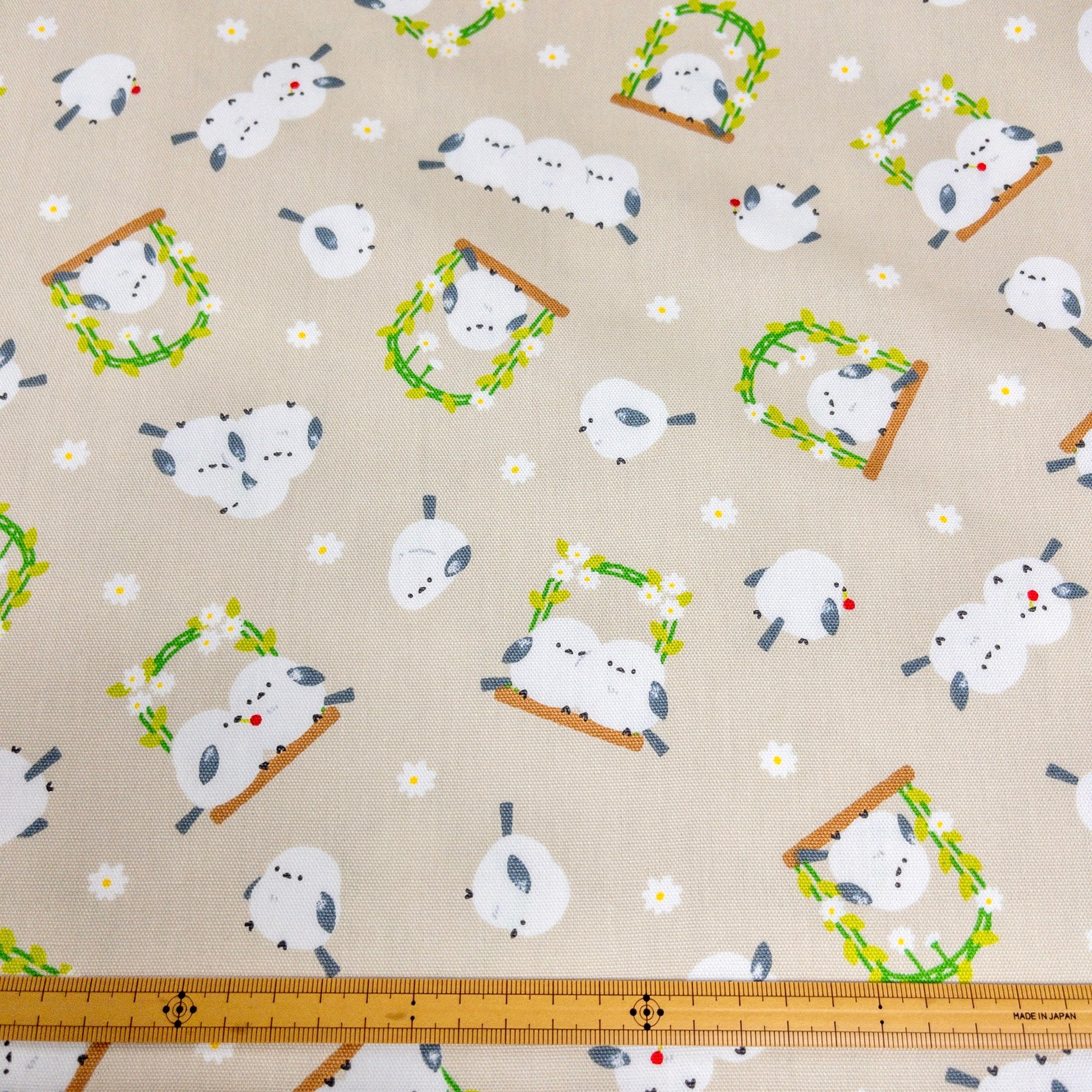 Japan | long-tailed tit wreath flowers 北海道小鳥「雪之妖精」花圈 | cotton printed oxford 純棉