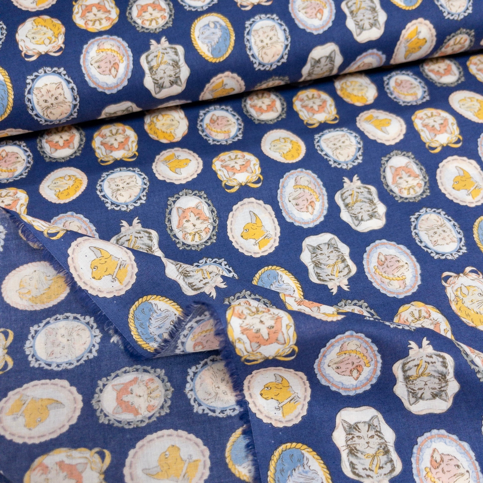 Japan | mirror cat 貓貓鏡子 | cotton printed 60s 純棉
