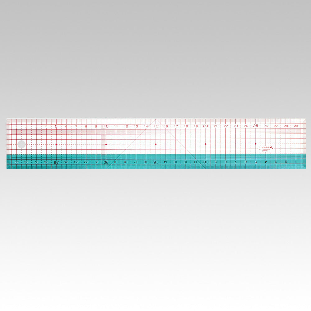 尺子除了一般直行測量,亦可測量彎曲部分。透明設計即使在彩色圖案的布料上也容易看到刻度,並且可以使用45度角線輕鬆繪製。