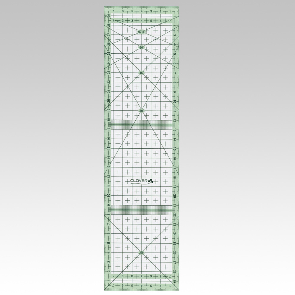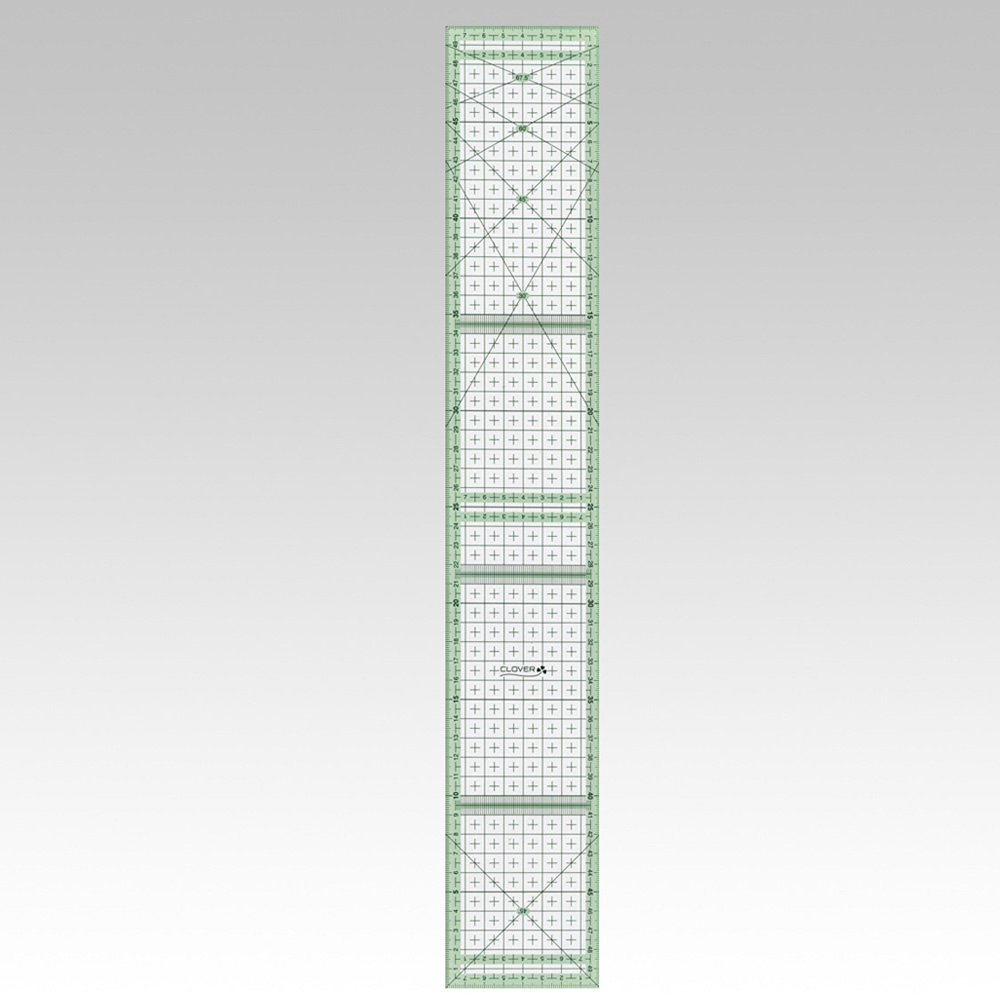 - 尺子除了一般直行測量,即使在彩色圖案的布料上也容易看到刻度,可配合輪刀使用。