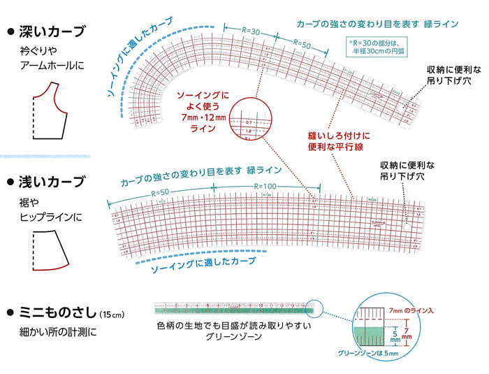 內含:深曲線尺,淺曲線尺,迷你尺(15cm),膠套