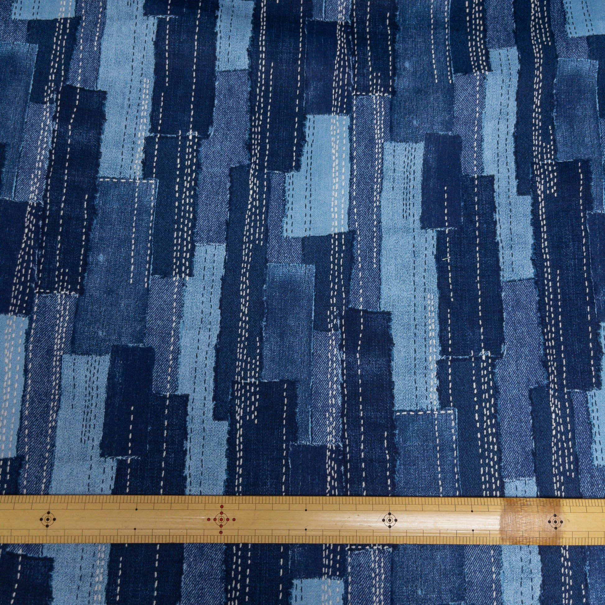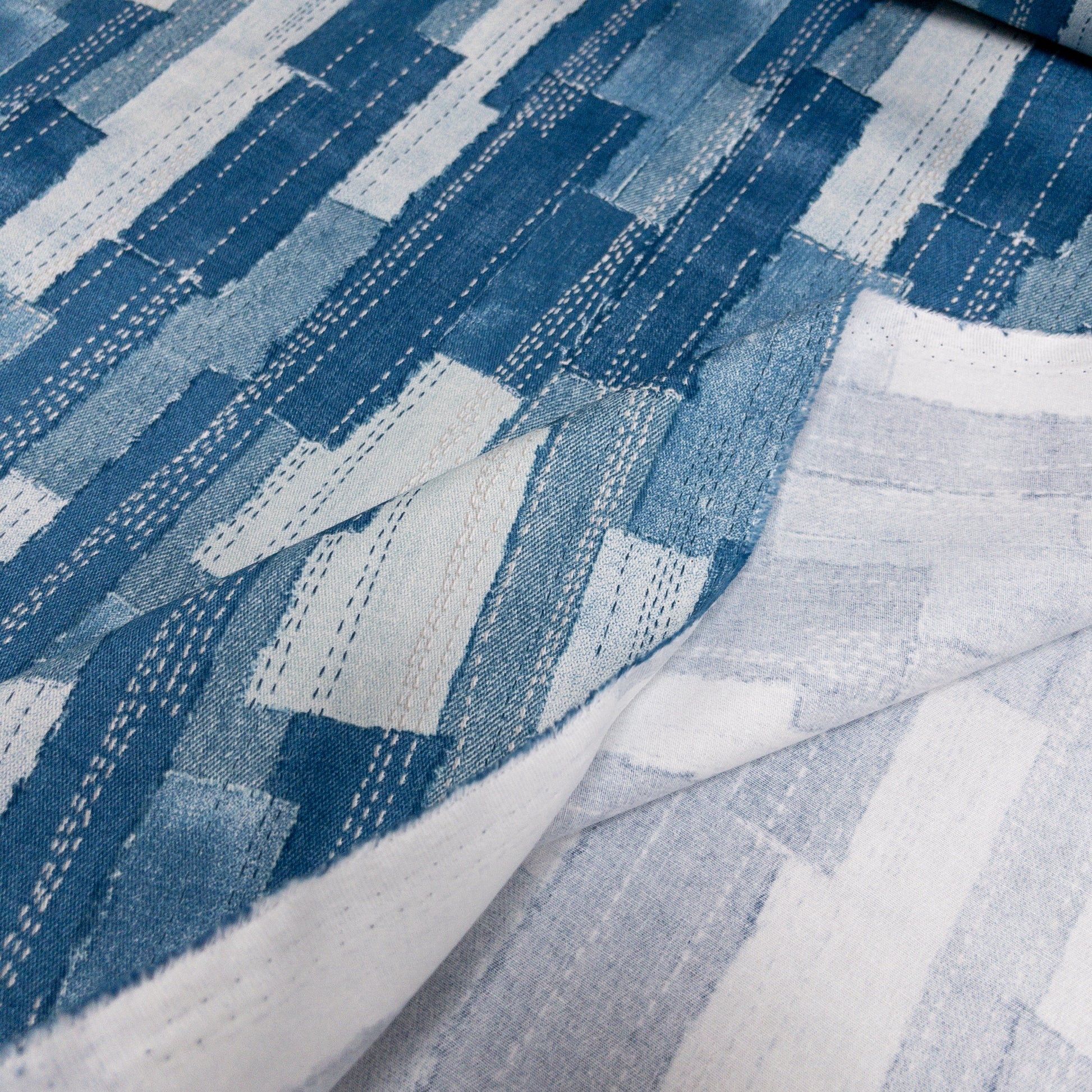 Japan | denim sashiko look 牛仔刺子繡拼布條風格 | cotton printed twill 純棉