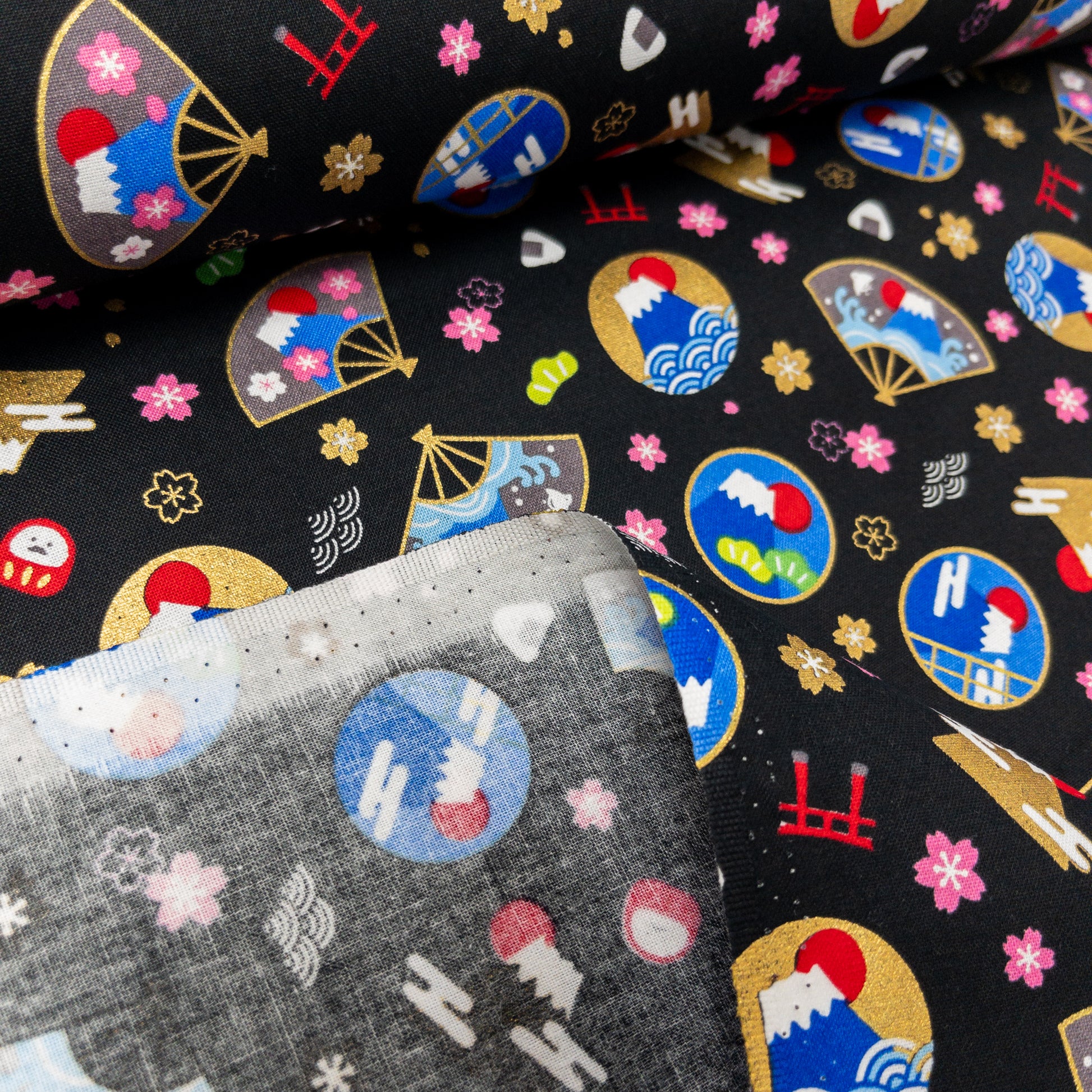 Japan | gold pattern fuji 金扇圖案富士山 | cotton printed sheeting