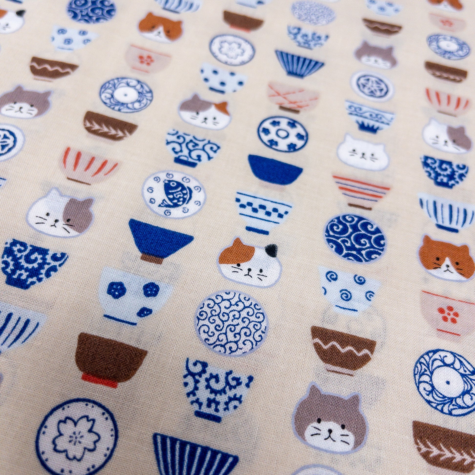 Japan | cat&cup 貓貓茶碗 | cotton printed sheeting 純棉