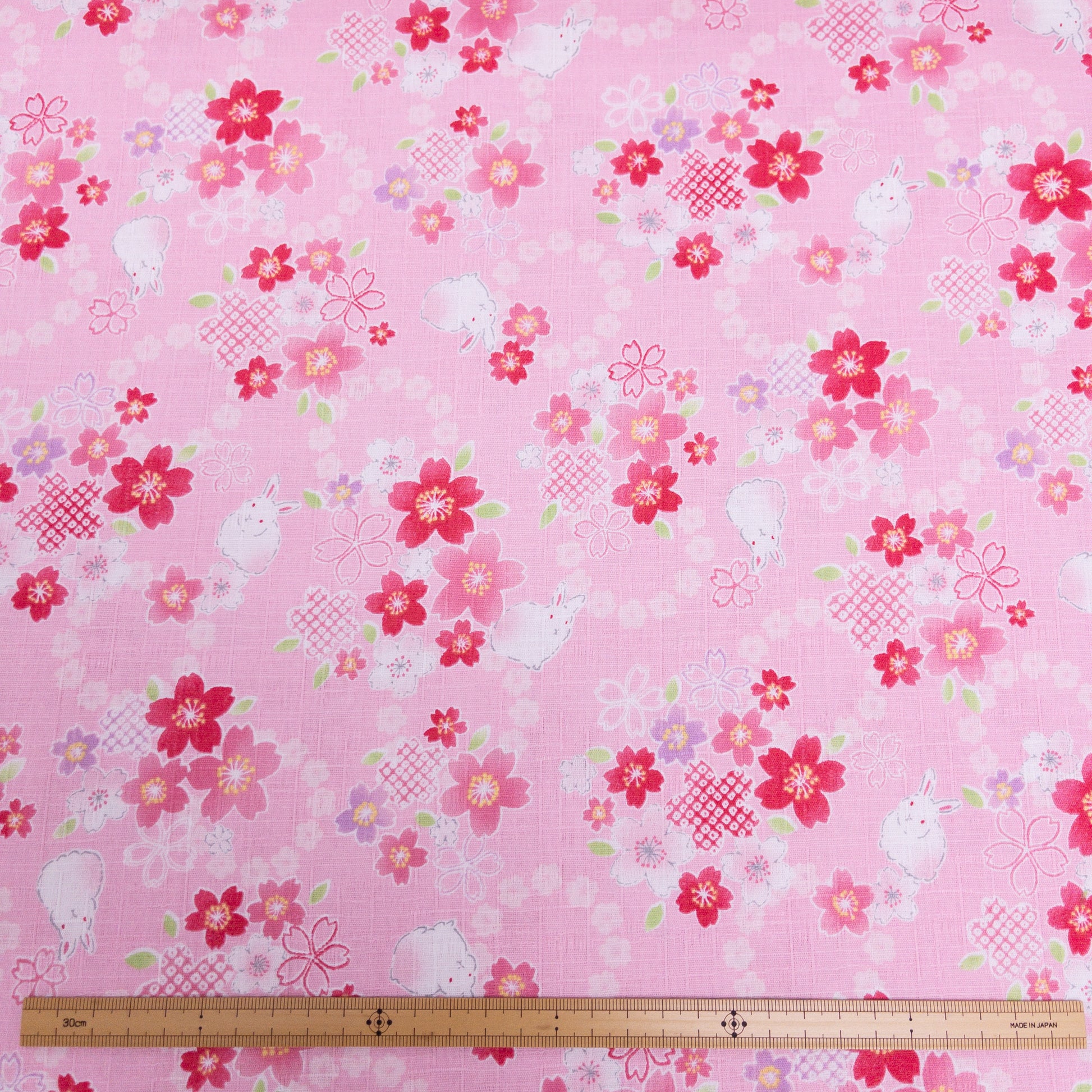 Japan | Sakura bunny 櫻花白兔竹節棉 | cotton printed dobby 竹節棉