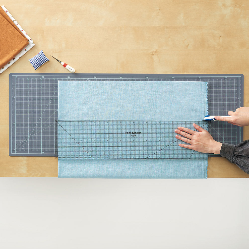Opens horizontally for easy cutting of long items. With an open width of 90 cm, long fabrics can be cut easily. It can also be folded and used as an A3 size mat. Features wavy creases for quick opening and smooth cutting.