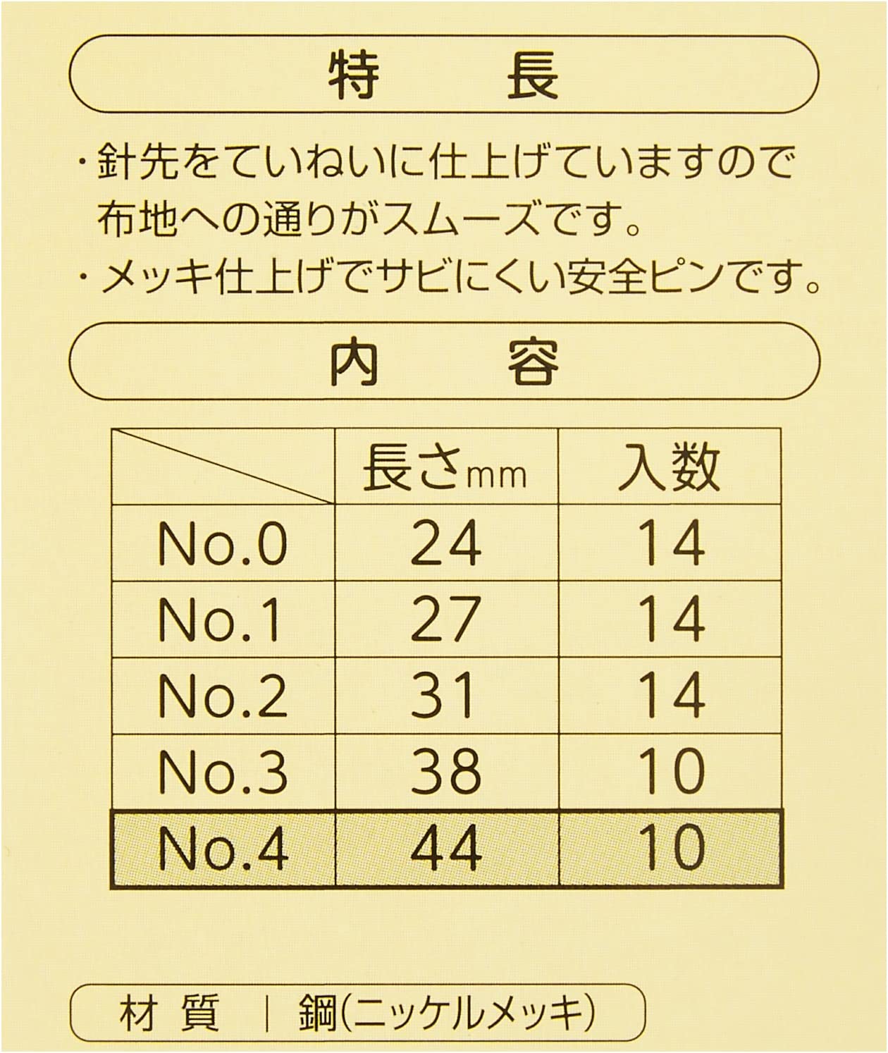 Clover safety pin 扣針 安全別針 No.4 44mm - 10pcs