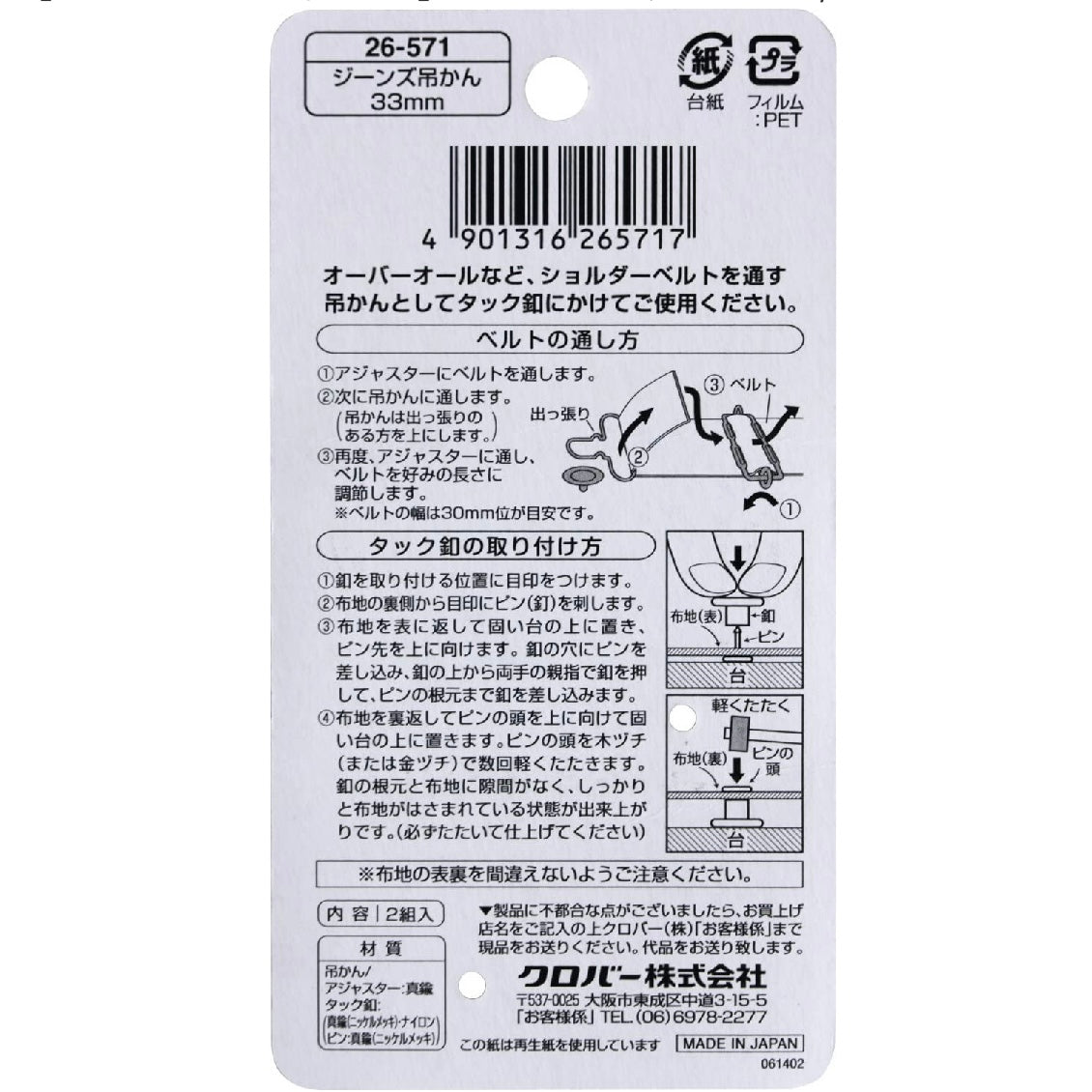 製作吊帶裙/褲使用。適合牛仔布等厚布使用。不需專用打鈕工具,只需要使用錘仔便可安裝。