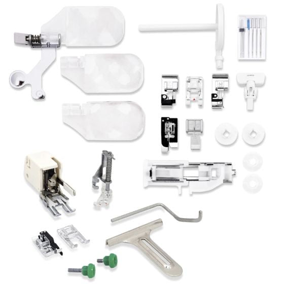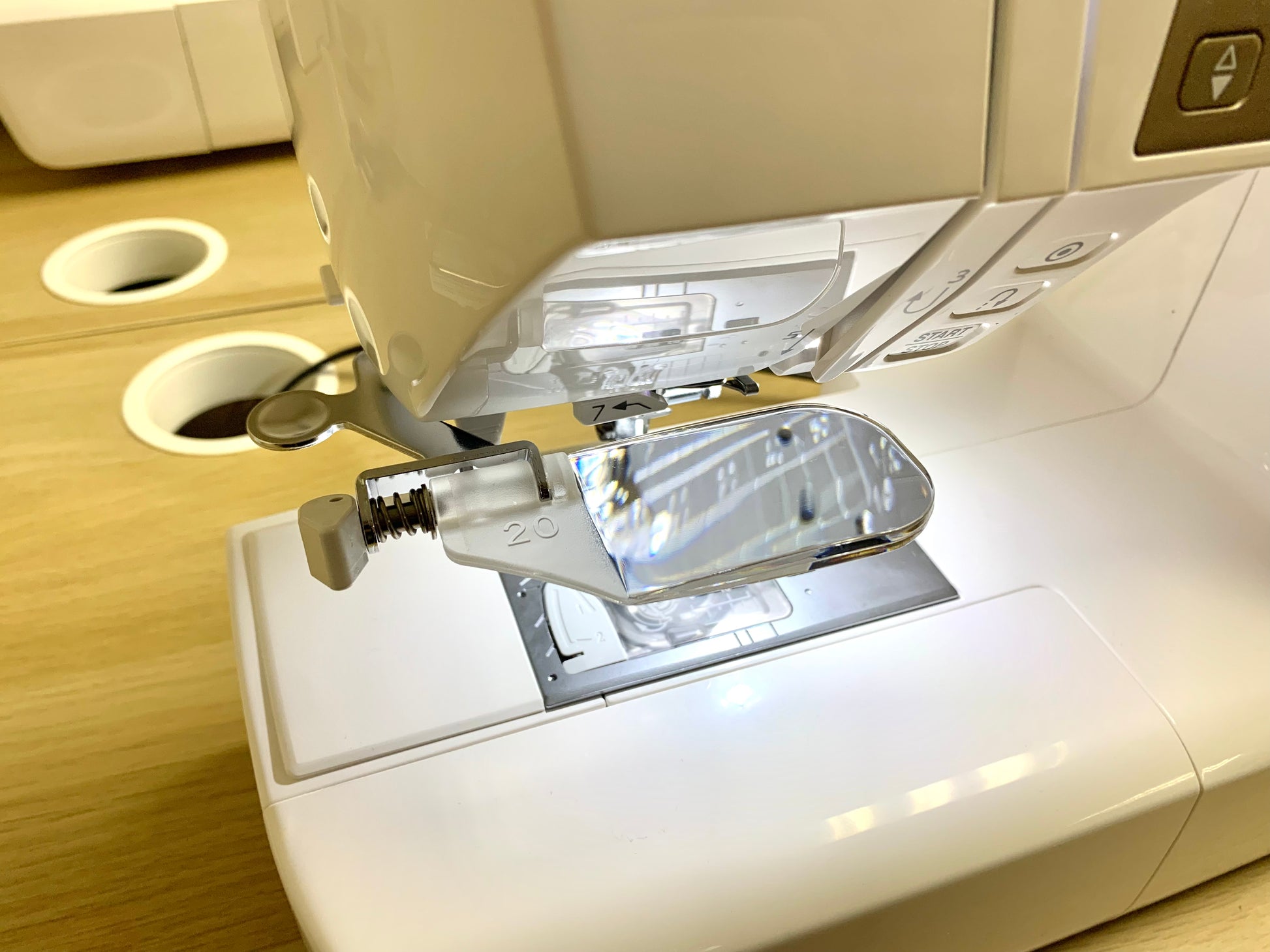 這款衣車適合年長人士使用,配備三款不同度數放大鏡。除了Acuview放大鏡外,與4300qdc不同之處,是多了膝控壓腳、升級版針板及穿線器(與仿工業車mc6700p相同) ,另外燈更光亮、機身較重及針柱加厚。