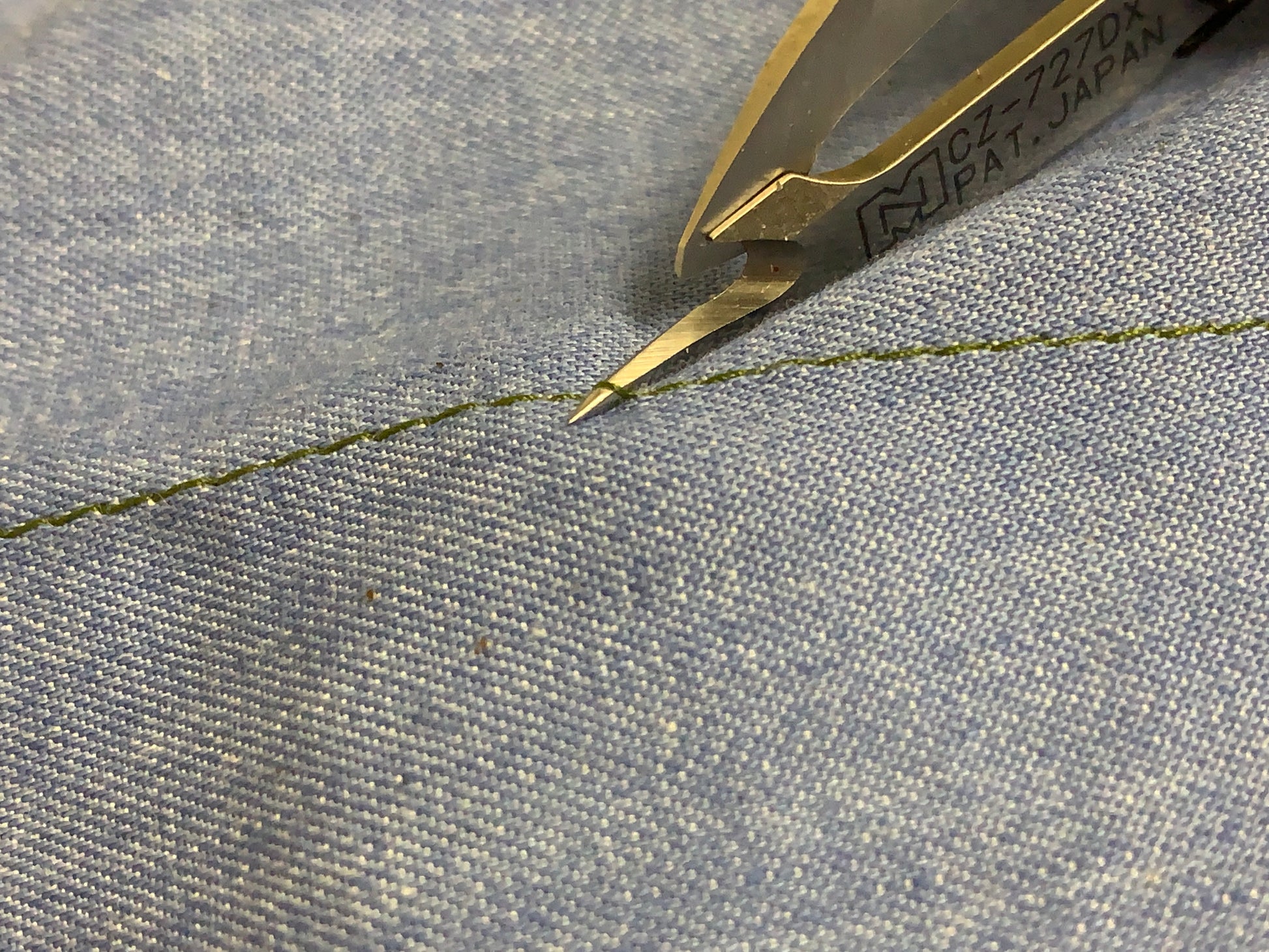 Combines the functions of a seam ripper and a thread cutter, the tip of the front end part can be used to remove the thread, and it can also cut the thread like a thread cutter. Due to the curved design of the cutter head, the scissors can be closer to the fabric and can cut more closely without hurting the fabric. A hard case is included.