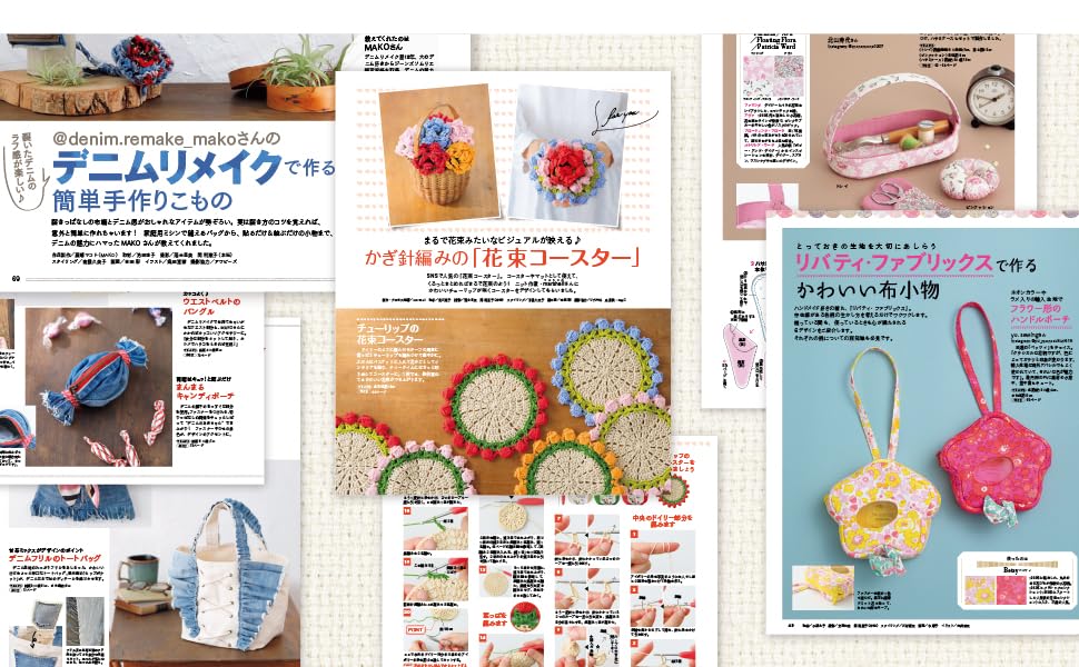由北川京子特別監製的“Liberty Fabrics”花卉面料!在「北川京子的幸福手工」系列第2卷中,製作了一個手掌大小的小袋。