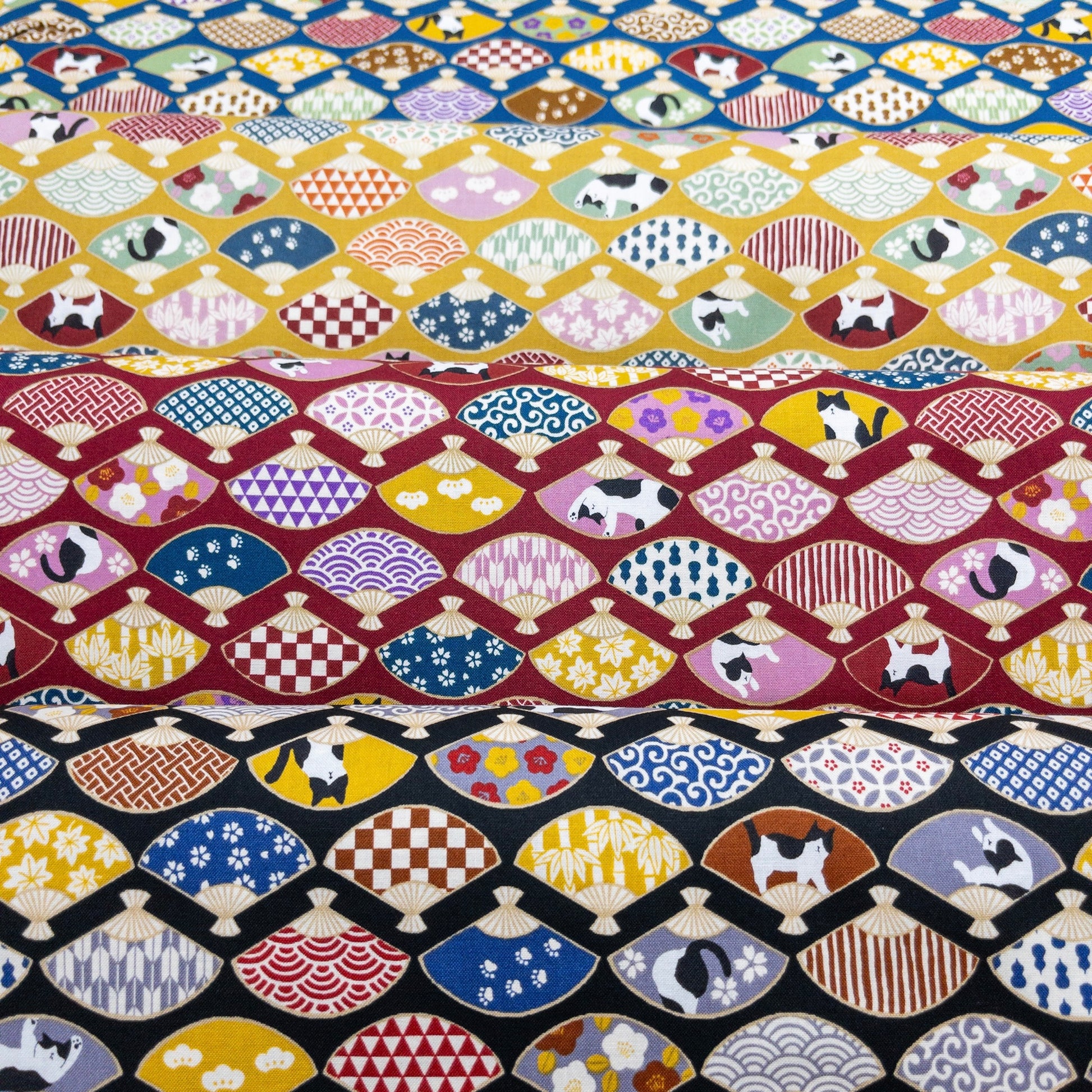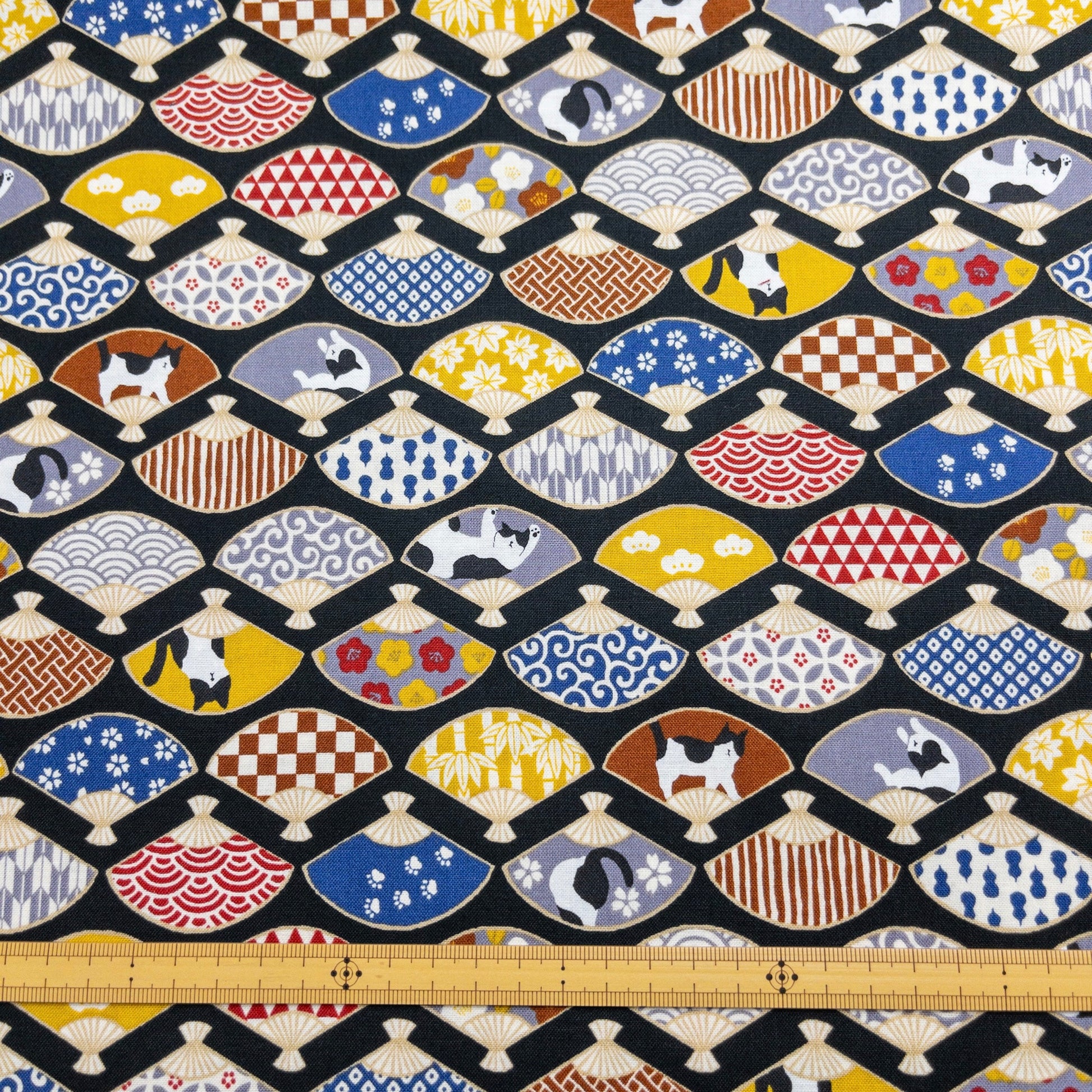 Japan | japanese folding fan & cats 和風和扇貓貓 | cotton printed sheeting 純棉