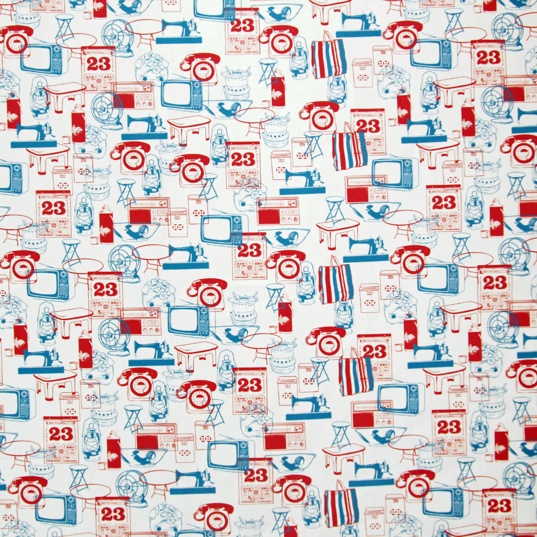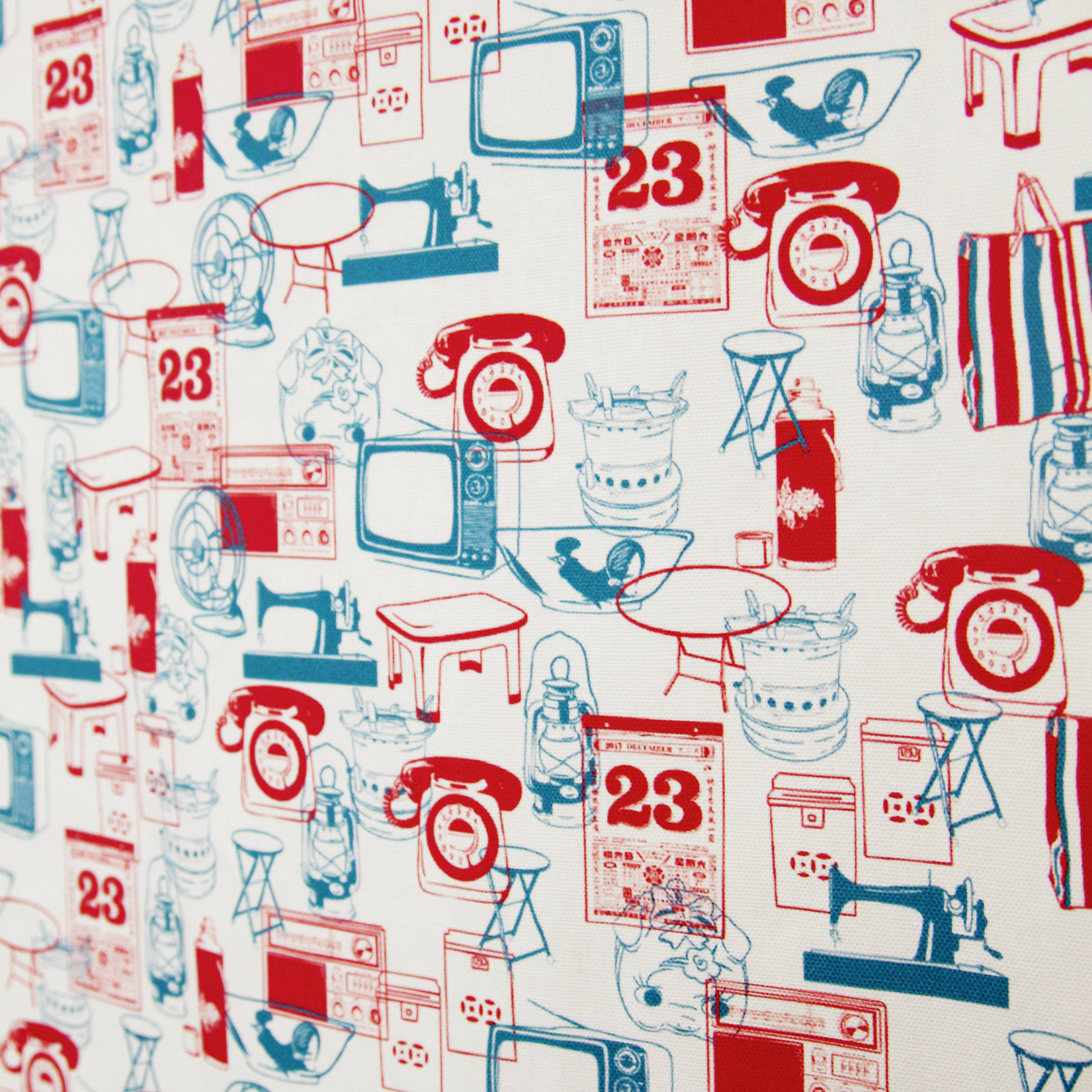 【K‧T FABRIC】紅白藍「傢俬電器」 red-white-blue ''home furniture & appliance'' cotton printed oxford 純棉