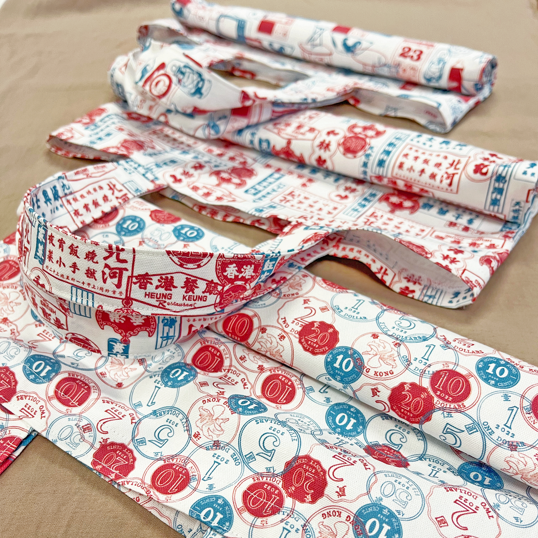 When you see the three colors: red, white and blue, you may be reminded of "red, white and blue plastic bags," which is also known as one of the spirits of Hong Kong. We combine this element with 3 other special Hong Kong themes. This way you can feel connected to the local culture through these colors and patterns🇭🇰