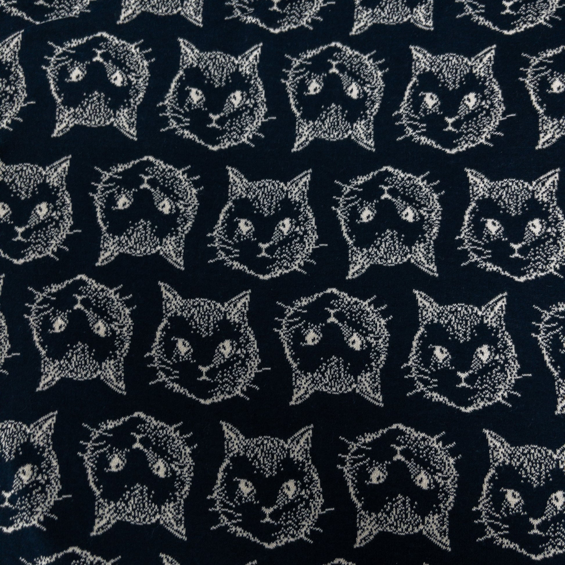 maffon | chaton cat navy beige 水鑽貓貓 深藍+米色 | cotton jacquard knit 雙面純棉提花針織 - 160cm