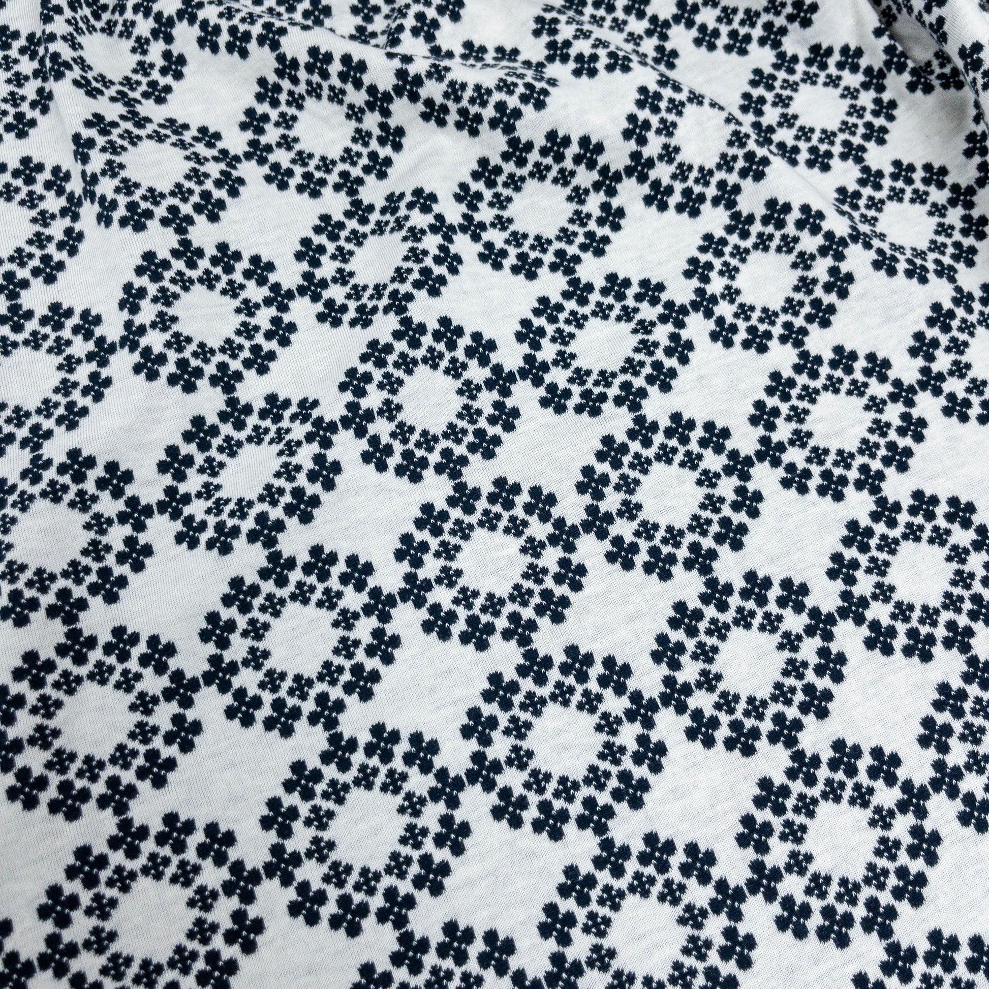 maffon | flower ring navy ivory 花圈 深藍+米白 | cotton jacquard knit 雙面純棉提花針織 - 160cm