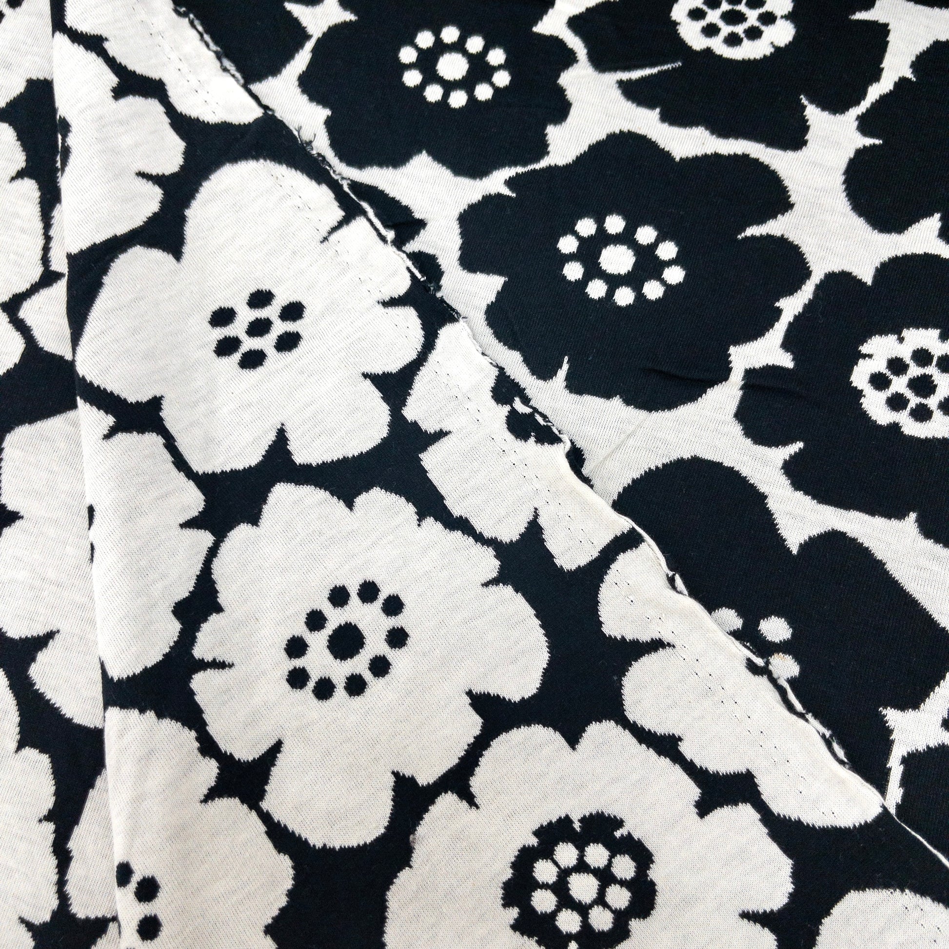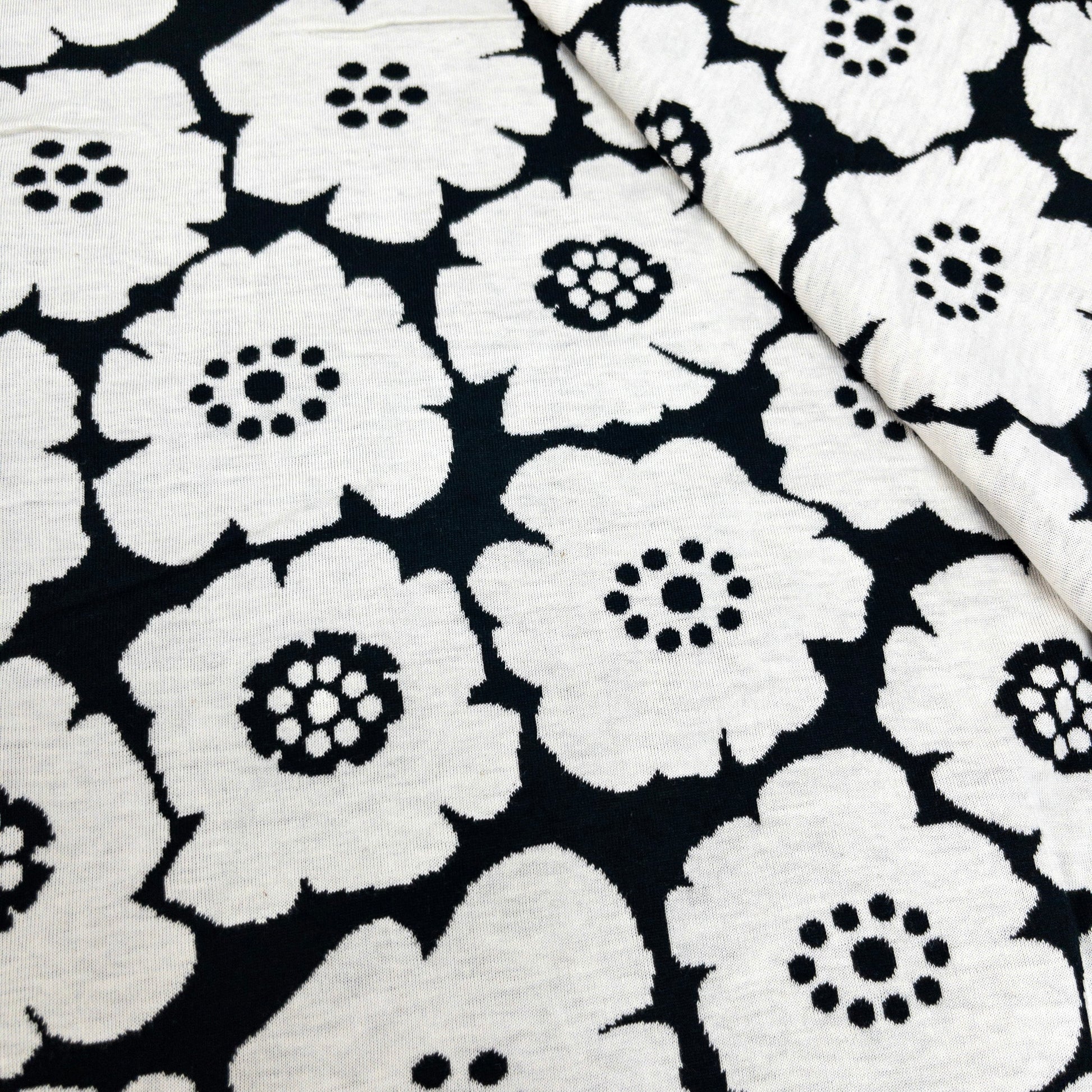 maffon | medium anemone flowers black ivory 北歐簡約中花 黑+米白 | cotton jacquard knit 雙面純棉提花針織 - 160cm