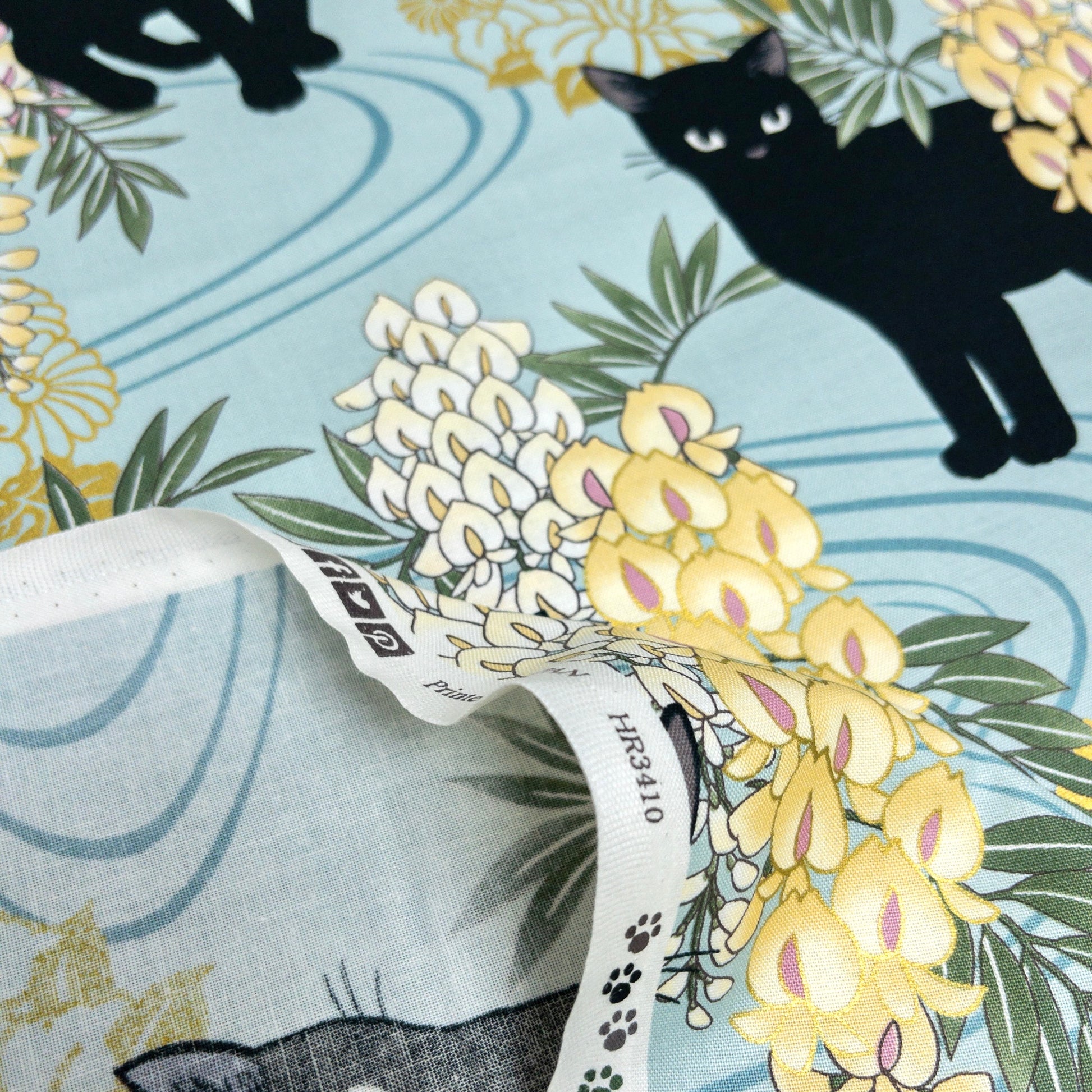 Quilt Gate | gilded wisteria flowers and black cats 燙金紫藤花大黑貓 | cotton printed sheeting 純棉